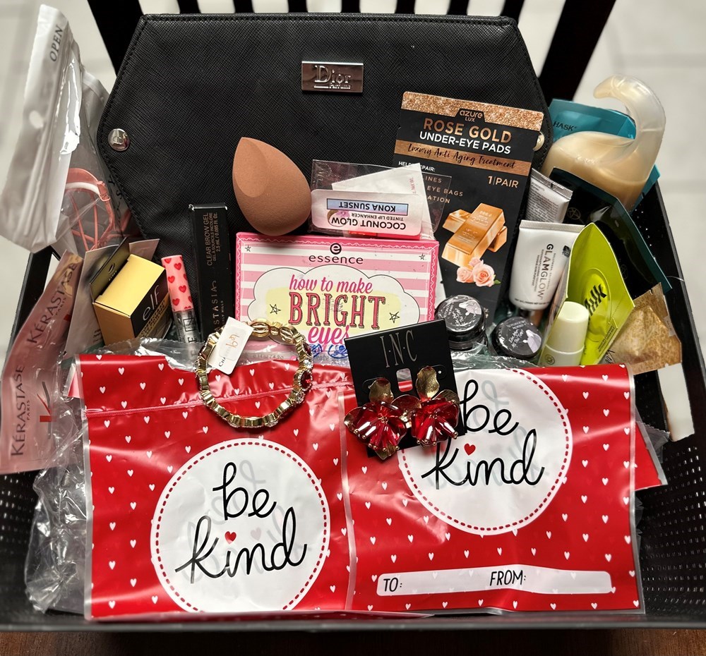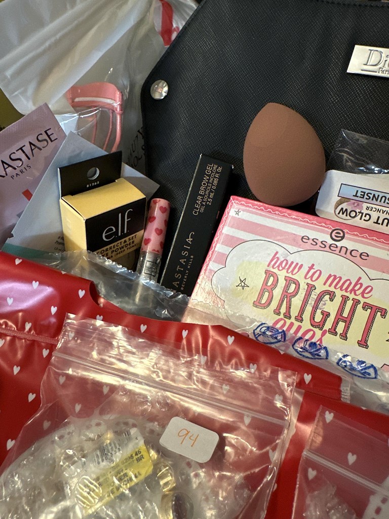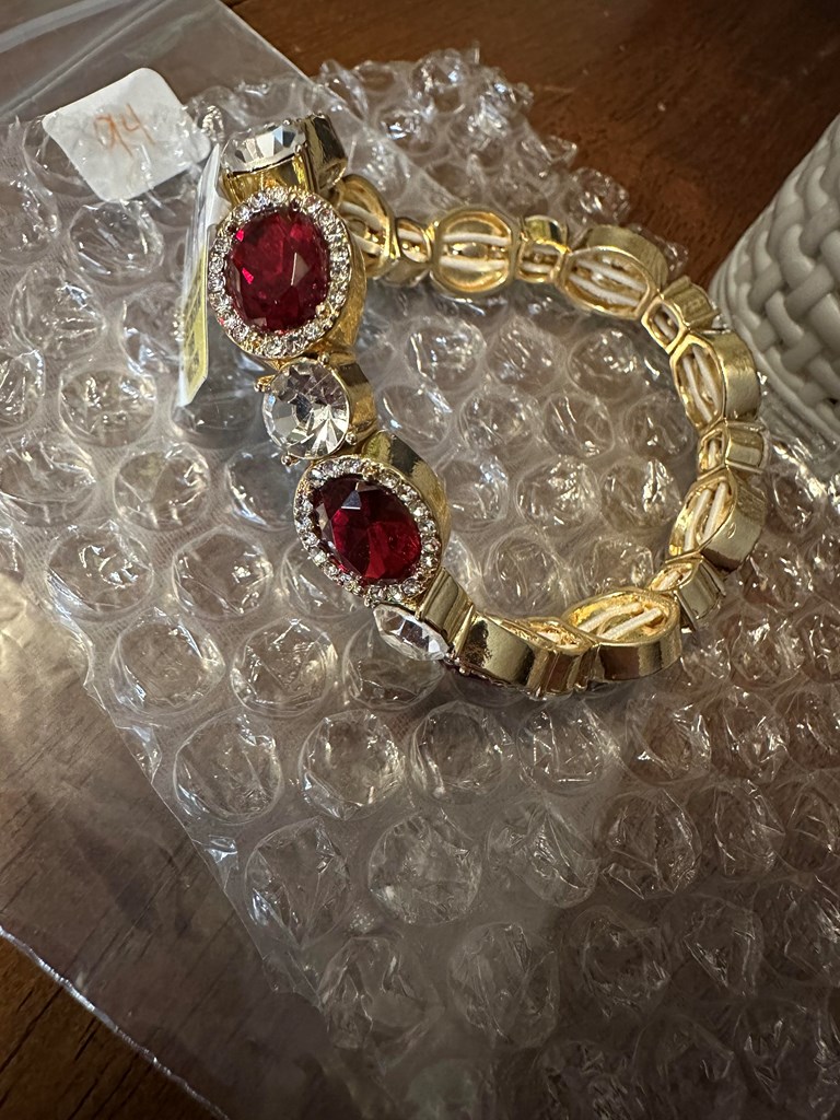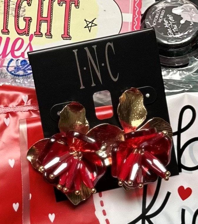Dior Makeup Bag w/makeup & facial products & INC Red & Gold Flower Earrings & Red/CZ Gem Bracelet