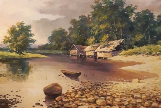 Unknown artist A lonely boat, oil on canvas 43 x 64 sm